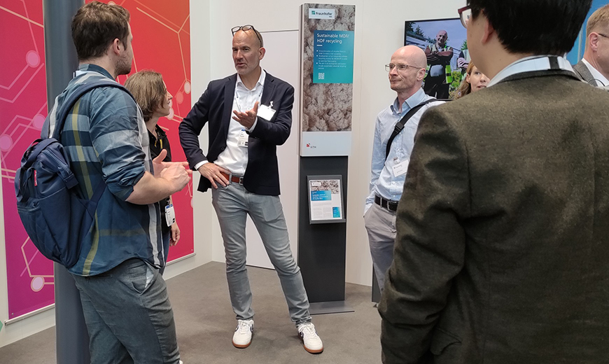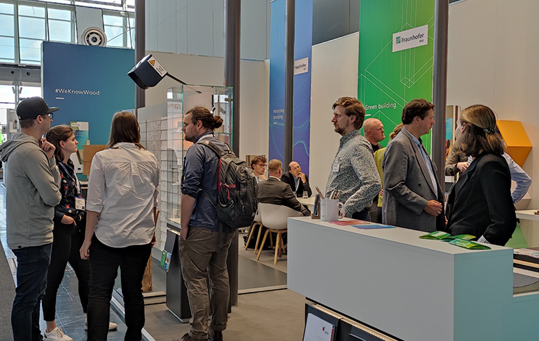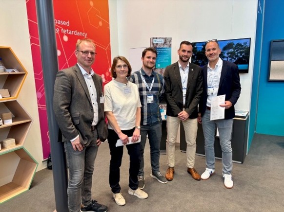 Once again this year, the Fraunhofer Institute for Wood Research WKI, together with the iVTH, presented innovative research and development work in the field of “Wood | Renewable Raw Materials.” The joint exhibition stand in Hall 26 offered information on numerous research projects and practical solutions. The iVTH provided information on the recycling of MDF/HDF, while the Fraunhofer WKI exhibits included, for instance, a newly developed facade element for sustainable construction using Robinia and Kiri wood, as well as insulation materials based on renewable raw materials. Bio-based flame-retardant solutions for wood and hybrid materials, as well as sustainable wind turbines, were also featured at the exhibition.